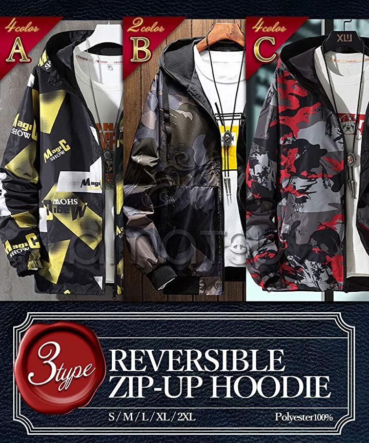 Amatsu reversible zip-up hoodie windbreaker casual outer pattern men's
