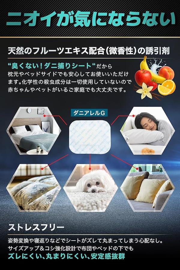 天然フルーツエキスを成分にした誘引剤でダニを誘き寄せる臭くないダニ捕りシートです。
