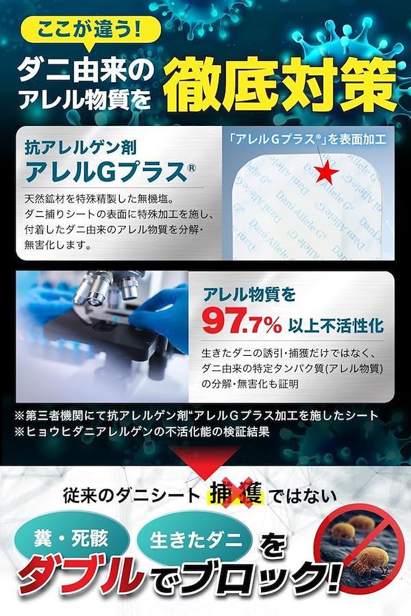 シートには抗アレルゲン剤「アレルGプラス」で表面加工を施し、付着したダニ由来の特定タンパク質(アレル物質)を低減致します。