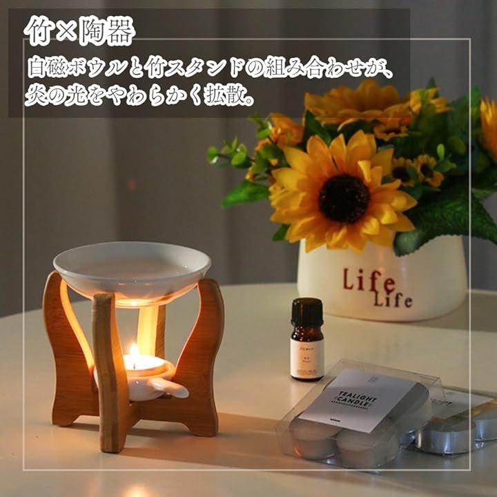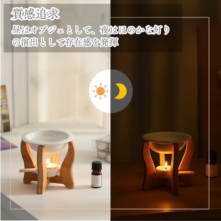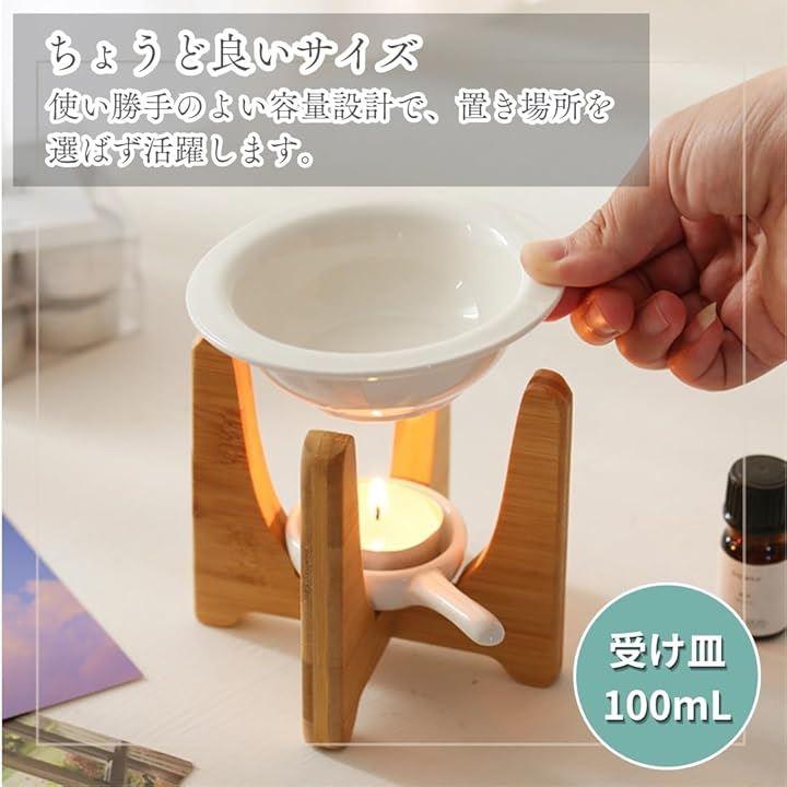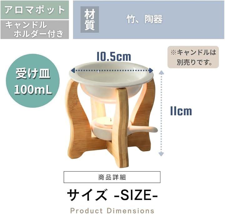 「商品内容」パッケージ内容:スタンド、受け皿、キャンドルホルダー 本体サイズ(約):直径10.5cm 高さ11cm 主な材質:竹、陶器 *サイズ詳細は商品画像をご確認ください。