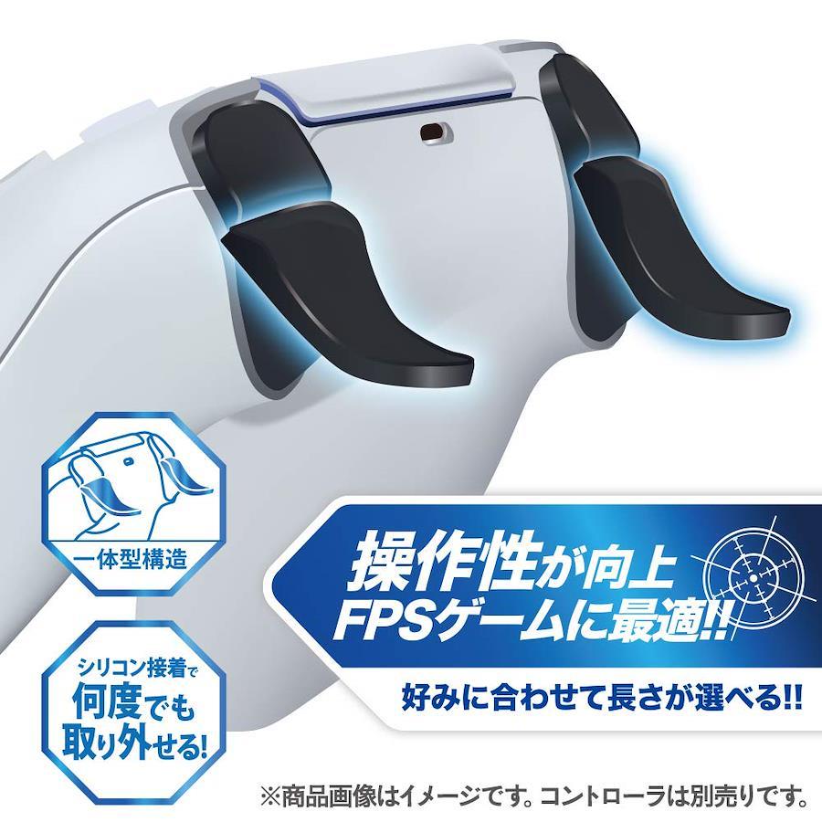 トリガーボタンの操作性をUPするアイテム!L2R2ボタンの操作性がUPし、FPSの射撃操作を快適にアシスト! 装着すると指を置ける範囲が広がり、軽い力でボタンを押すことができ、素早いトリガー操作で遊べます。