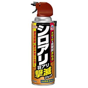 ■使用方法/召し上がり方缶をよく振ってからお使いください。・使用開始時に天面のストッパーを上におこして、パキッと音がするまで後ろの方に曲げて折りとる。・使用前に缶をよく振って害虫に直接噴射するか、発生場所や通路に噴射する。・狭いすき間に処理する場合は、すき間ノズルを取り付ける。・床下処理の場合は、床下換気口から床下全体に広がるよう、1坪あたり5~6秒噴射する。1本で15坪(約50平方メートル)処理できる。・木材に使用する場合は、薬剤が中まで染み込むよう、まんべんなく噴射する。■使用上の注意【使用に際しての注意】・使用前に必ず製品表示を読み、十分理解した上で使用する。・定められた用法・用量を厳守する。間違った使い方をすると、効力不足や健康を害することがある。・アレルギー症状やかぶれを起こしやすい人、喘息の症状がある人、病人、妊婦、乳幼児等がいる場所では使用しない。・飲食物・食器・子供のおもちゃ・観賞魚・小鳥などのペット類・飼料・観賞植物にかからないようにする。・家具の塗装面や合成樹脂の中には薬剤に侵されやすいものがあるので、噴射の際には目立たない場所に噴射して、影響のないことを確かめてから使用する。【使用中又は使用後の注意】・人体に向かって噴射しない。また、噴射気体を吸入しない。・噴射中は喫煙、飲食等はしない。・薬剤が皮膚についた場合は、石けんを用いてよく洗う。また、目に入った場合は、直ちに水で洗い流す。・万一、身体に異常が起きた場合は、直ちに本剤がブロフラニリドとシプロコナゾールを含む商品であることを医師に告げて診療を受ける。・家具、建具などに薬液がかからないようにする。・大理石や御影石等の石材や自動車などの塗装面には変色の恐れがあるので、かからないようにする。・20秒以上連続噴射しない。・使用中、使用後は十分に換気する。【保管上の注意】・直射日光や火気を避け、子供の手の届かない涼しいところに保管する。・缶のさびを防ぐため、水回りや湿気の多い場所にはおかない。【廃棄の方法】・本品は使い切ってから捨てる。・捨てるときは、風通しが良く火気のない屋外で噴射レバーを引き、噴射音が消えるまでガスを抜いて、燃えないゴミとして捨てる。その際、噴射レバーを引いたまま、茶色のスプレーキャップ側面の孔につまようじ等を差込むと、噴射レバーがロックされ最後までガスを抜くことができる。噴射が不十分な場合は、つまようじ等を押し下げると最後まで噴射できる。・大量に使い残した缶の廃棄方法はお手数ですがアース製薬お客様からお気づきを頂く窓口に問い合わせる。※ガスの抜き方噴射レバーを引いたまま、側面の孔につまようじ等を差込み、噴射レバーをロックしてガスを抜く。その際、顔にかからないように注意すること。【火気と高温に注意】高圧ガスを使用した可燃性の製品であり、危険なため、下記の注意を守ること。(1)炎や火気の近くで使用しないこと。(2)火気を使用している室内で大量に使用しないこと。(3)高温にすると破裂の危険があるため、直射日光の当たる所やストーブ、ファンヒーターの近くなど温度が40度以上となる所に置かないこと。(4)火の中に入れないこと。(5)使い切って捨てること。