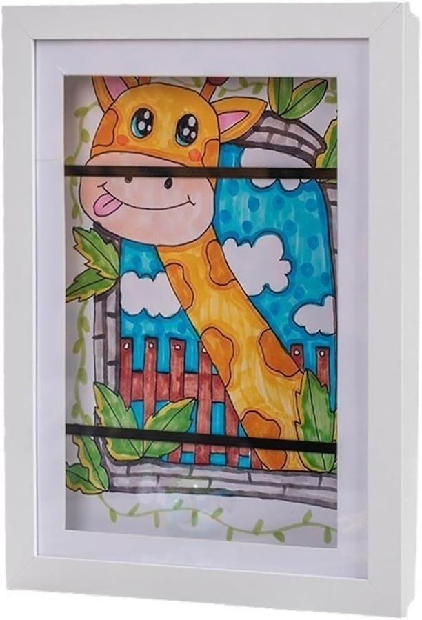 厚みのある構造なので、平面の絵だけでなく立体的な工作や油彩パネル、写真アルバム、手作りカレンダーなども飾れます。