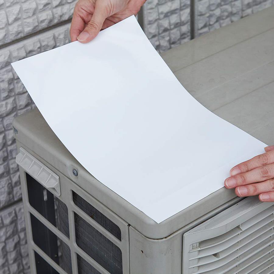 3営業日以内に発送≪新品未開封品≫:・エアコンの室外機の上部に貼るだけで太陽光(日射)を反射することにより冷房運転中の室外機の負担を軽くします。 ・シールタイプなので取り付けが簡単。見た目もスッキリで目立ちません。 ・対候性の高い粘着剤を使用していますので、はがれにくく劣化もしにくい。 ・貼り付け面のサイズに合わせてハサミでカットできます。 ・室外機を直射日光が当たる場所に設置している場合、特に効果を発揮します。・カラー:ホワイト・耐用年数:5年間・のり残りしにくい粘着剤を使用していますが、万が一のり残りが起きた場合は、市販のシール剥がし剤等をご使用ください。