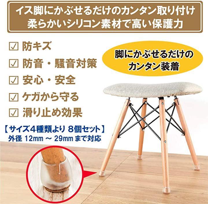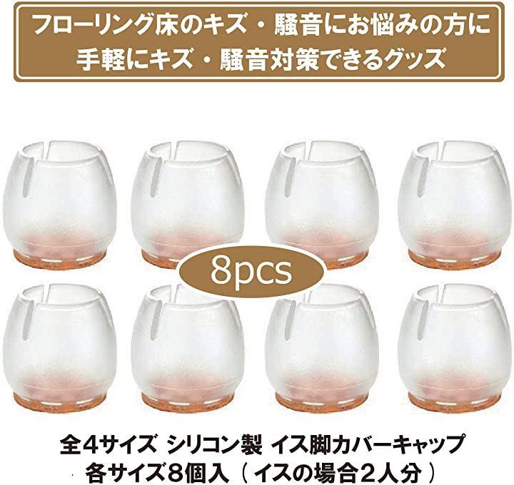 各サイズ8個セットでの販売になりますので、イスの脚にご場合される場合は2脚分の取り付けが可能です。