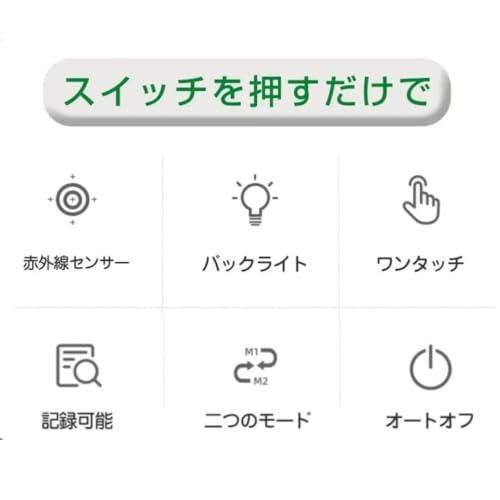 【1秒以内に高速測定】赤外線センサーにより非接触、約1秒で測定可能です. 【自動オフ機能】15秒間操作しないと、表示機能が自動的に終了します。自動シャットダウン機能付きて,バッテリーの電力を節約します. 【非接触式温度計 】本製品は非接触型温度計です,非接触的に温度測定ができます。 サイズ:約15×4×1.7cm 重さ:約65g(本体のみ) 温度測定距離:3~5cm ※乾電池は別売ですので、別途ご用意ください