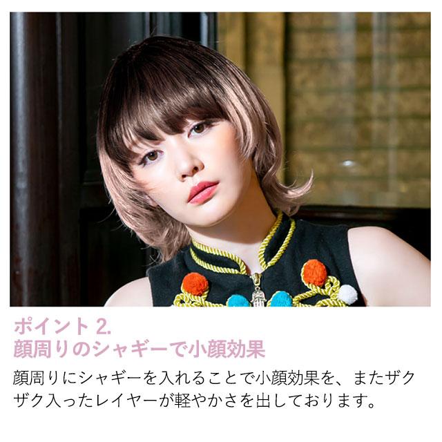 ランダムにはねるカジュアルウルフ丸みのあるトップ、毛先にかけてのくびれたシルエット、長い襟足のカンペキなシルエットで頭の形をキレイに見せてくれます。