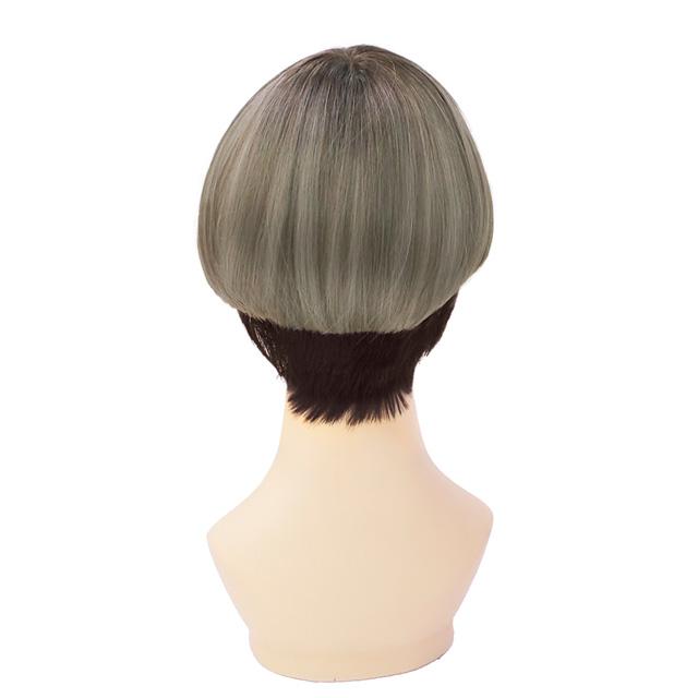 根元はブラックで、毛先にかけ黄味を帯びたグレーのグラデーション