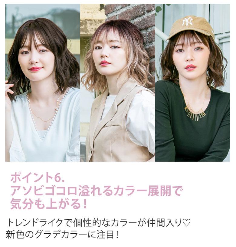 薄め前髪と立体感のあるウェーブがヌケ感を出してくれるから、甘くなりすぎずヘルシーな透明感を引き出してくれます。