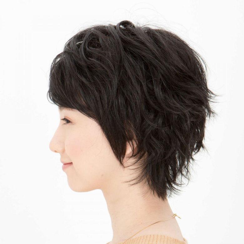 ふんわり丸いシルエットが女性らしい可愛さを演出する無造作ショートスタイル。