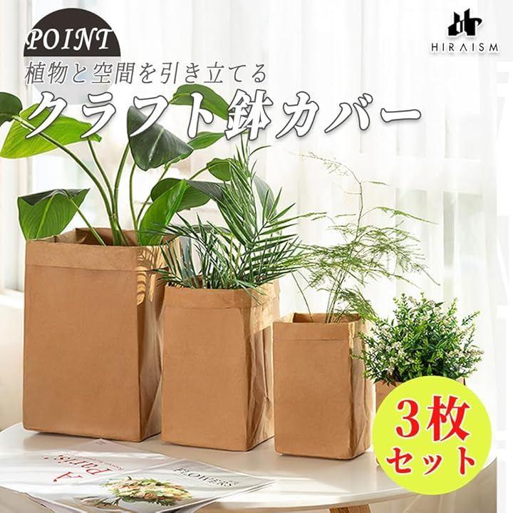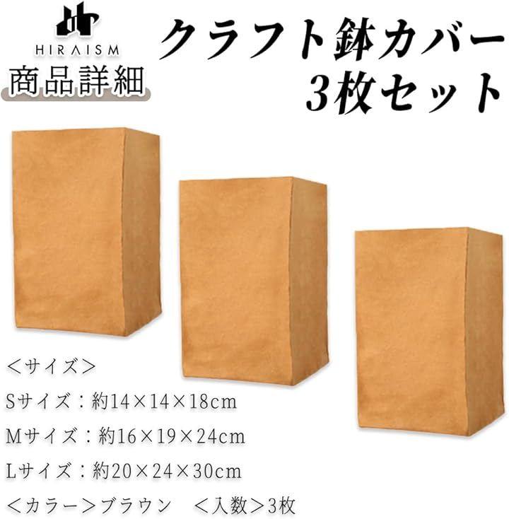 「商品内容」ウォッシャブルクラフト鉢カバー3枚セット <サイズ>Sサイズ:約14x14x18cm Mサイズ:約16x19x24cm Lサイズ:約20x24x30cm <カラー>ブラウン <入数>3枚