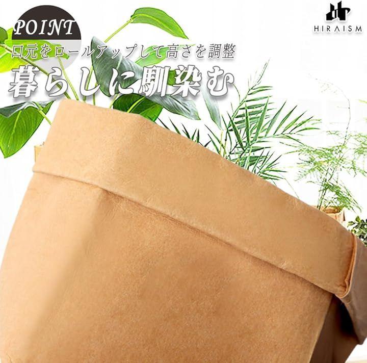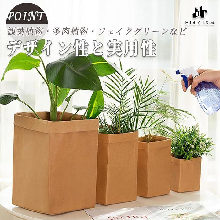 「植物と空間を引き立てる、クラフト素材の鉢カバー」本製品は天然セルロースを使用した「ウォッシャブルクラフト紙」で作られており、紙の風合いと布の耐久性を兼ね備えた新素材プランターカバーです。