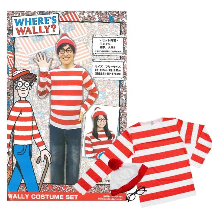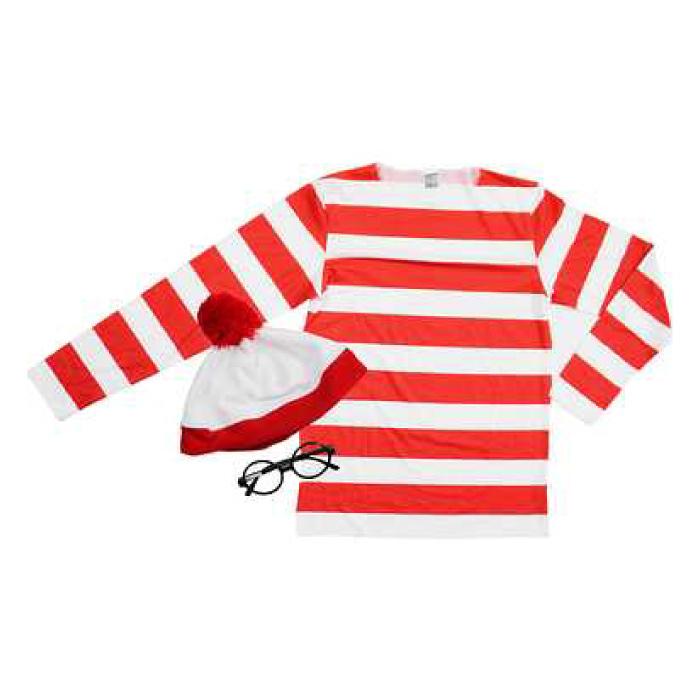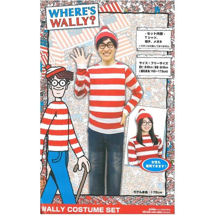 大人用フリーサイズのTシャツ、帽子、メガネがセットなので、すぐにウォーリーになりきれちゃう!