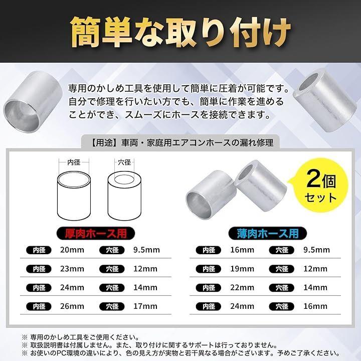 「エアコンホース対応」 R12およびR134aに対応したエアコンホースに使用できるカシメスリーブ(カシメキャップ)です。
