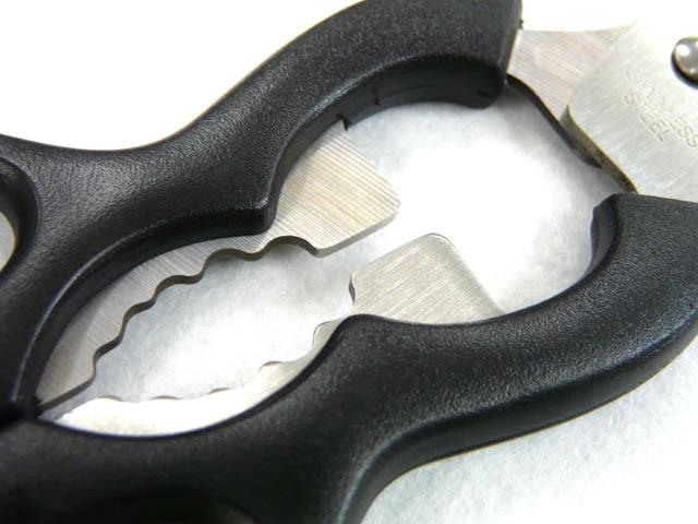 ハサミとしてだけでなく、栓抜きと殻割りの機能もあり!
