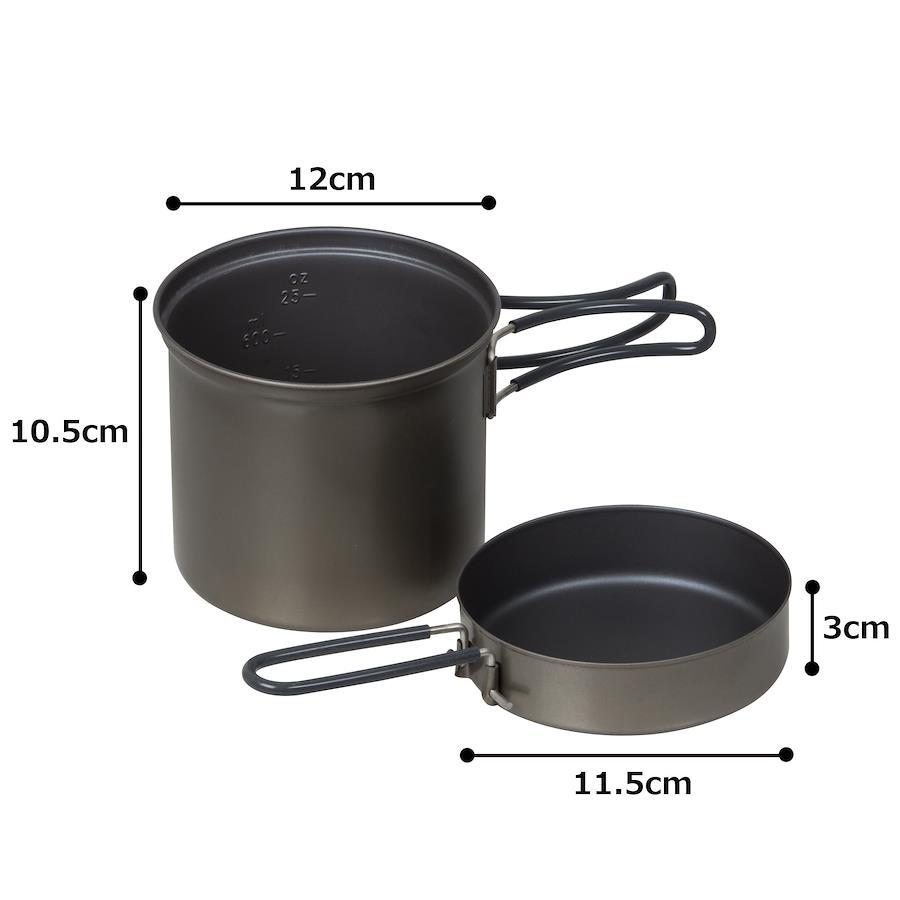 日本製(新潟県燕産)ナベサイズ : 径11×深さ9.5cmナベ容量 : 900mlフタサイズ : 径11×深さ3cmフタ容量 : 250ml素材 : チタン(国内製造)(取っ手部シリコンチューブ付き)質量 : 165g付属品 : スタッフバッグ内側セラミック樹脂コート対象シーズン: 通年