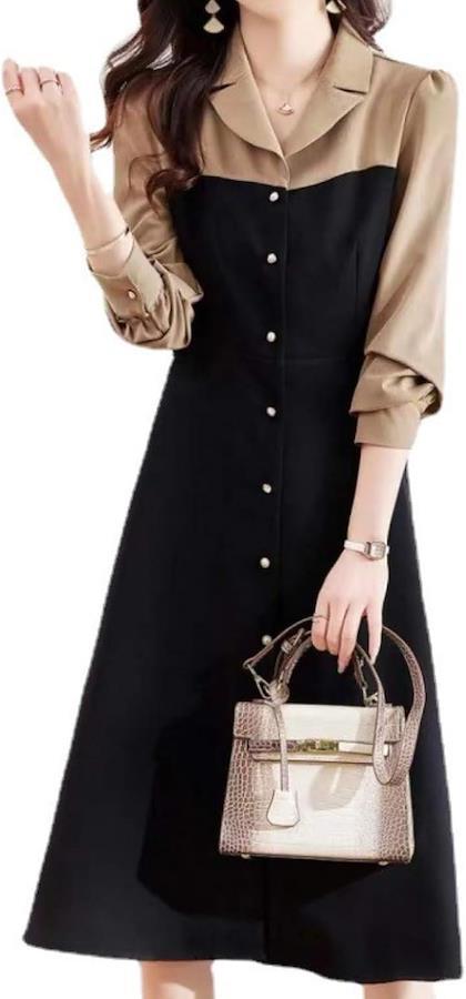 「幅広いシーンで活躍する一着」黒とベージュのバイカラーで、上品な印象のワンピースなので、通勤(オフィスカジュアル)から、デートや女子会、お呼ばれの場にもぴったりです。