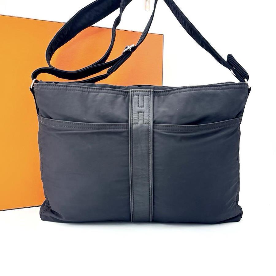 HERMES エルメス アカプルコ バサスMM ナイロン ショルダーバッグ ブラック 黒 クロスボディ 斜めがけ 通勤 通学メンズ 鞄 カバン