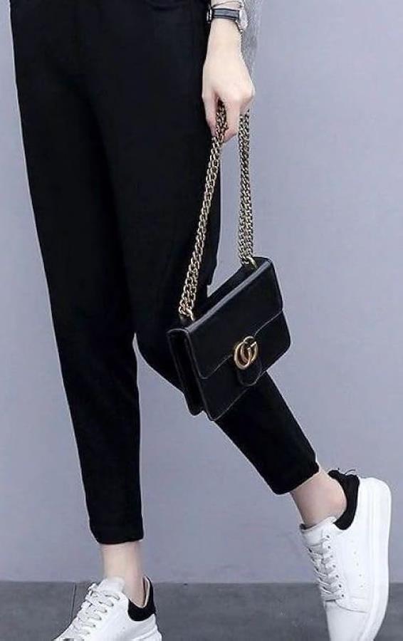 首回りはしなやかなトップスで美脚を叶えるテーパードシルエットのパンツ。