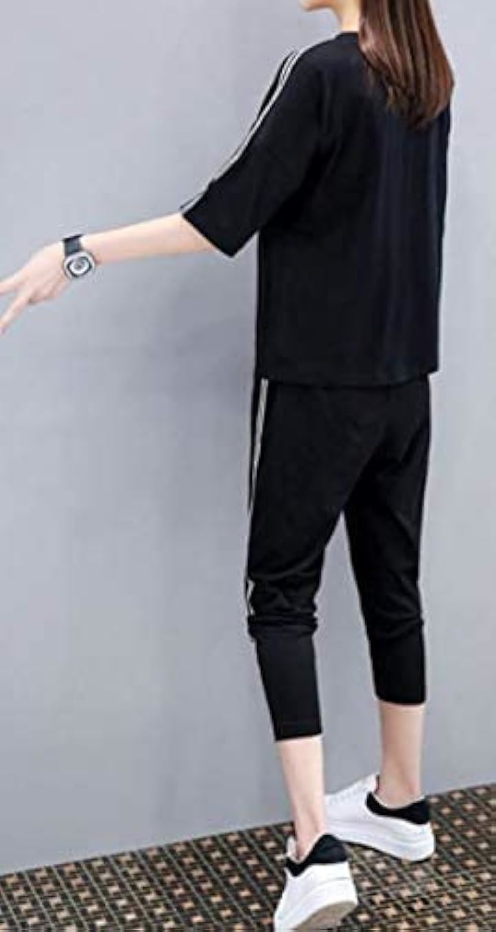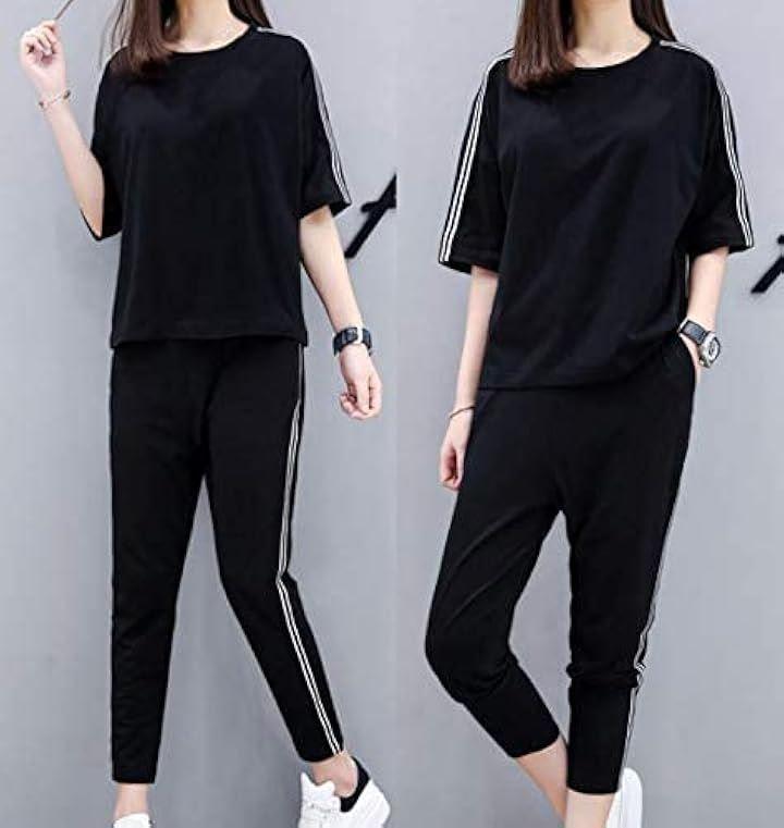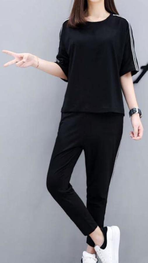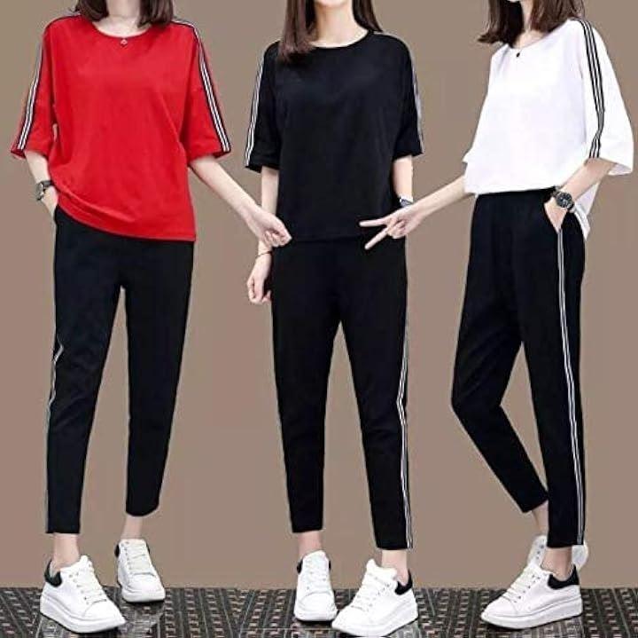 トップスの肩口とパンツのサイドにトレンドのダブルラインが入ったスタンダードなアイテム