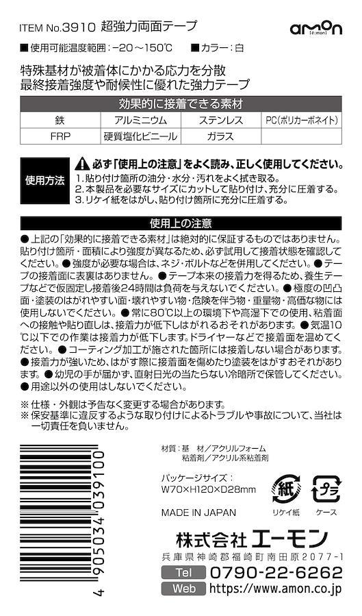エーモン(amon) 超強力両面テープ (バンパー・スポイラーなどに) 車外用 強力固定タイプ 白 幅25mm×長さ2m