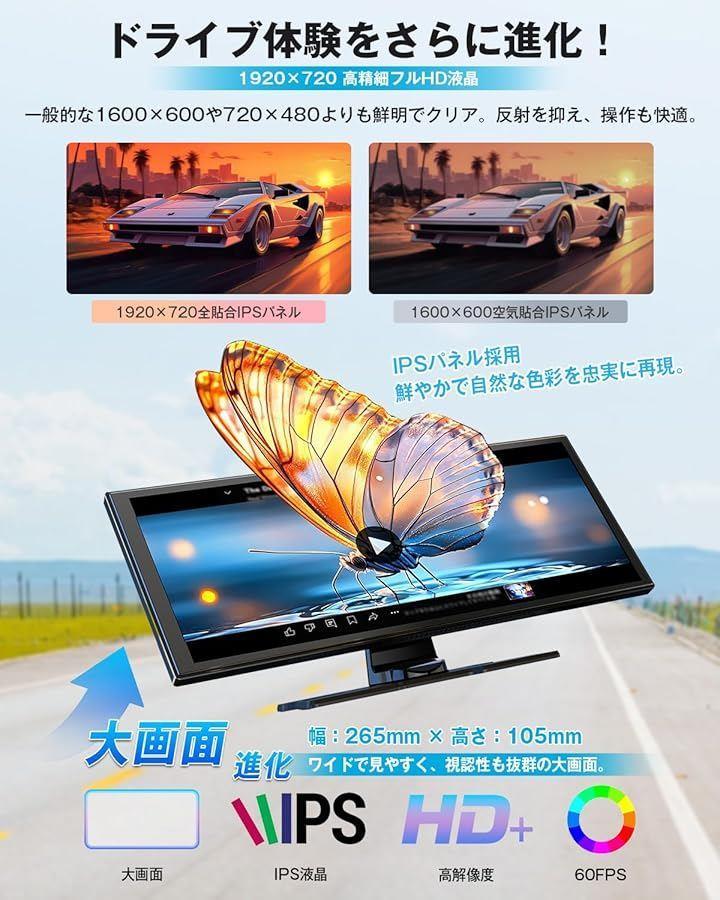 「高解像度1920x720搭載」高精細パネル採用で、ナビ画面や動画も鮮明に表示。