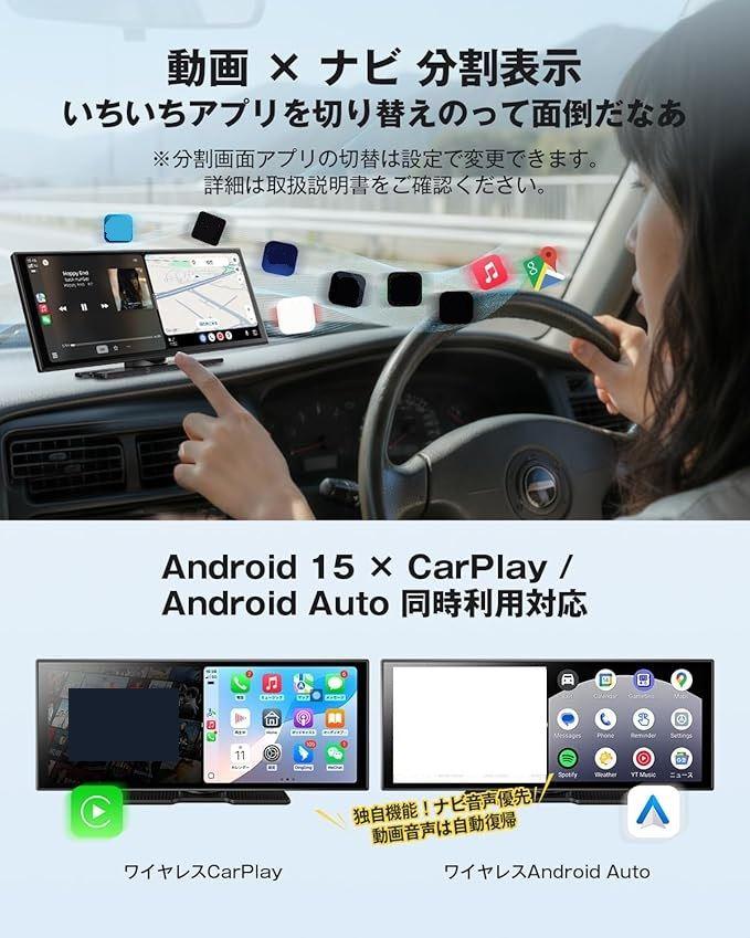 片側でCarPlay/Android Auto、もう片側で動画アプリを視聴可能。