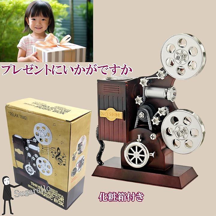 レトロな映写機型のおしゃれで可愛いオルゴールです。