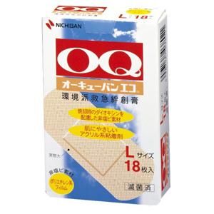 ■商品概要メーカー:ニチバン商品名:オーキューバンエコ Lサイズ(18枚)区分:医療機器内容量:18枚商品概要:新素材(ポリエチレン系フィルム)採用により、低温時でもゴワゴワ感が少なく良く伸びる絆創膏です。肌にやさしい低刺激性アクリル系粘着剤を採用。小さな通気孔でキズ口のムレやカブレを防止。キズ口につきにくい、やさしいパッドです。またパッド上下部分の幅を広くし、パッドサイドの浮きを防止。セパレーターの工夫でパッド部分に手を触れずに貼れるので清潔です。環境を考慮し、新素材の採用で、焼却時のダイオキシンの発生を抑えました。JANコード:4987167038021商品コード:074902105