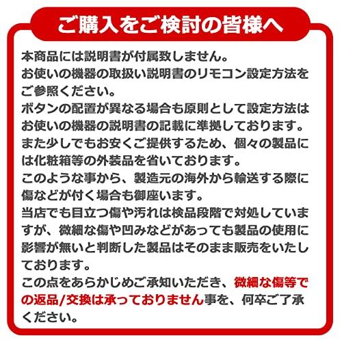 【ご購入をご検討の皆様へ】本商品には説明書が付属致しません。お使いの機器の取扱い説明書のリモコン設定方法をご参照ください。ボタンの配置が異なる場合も原則として設定方法はお使いの機器の説明書の記載に準拠しております。また少しでもお安くご提供するため、