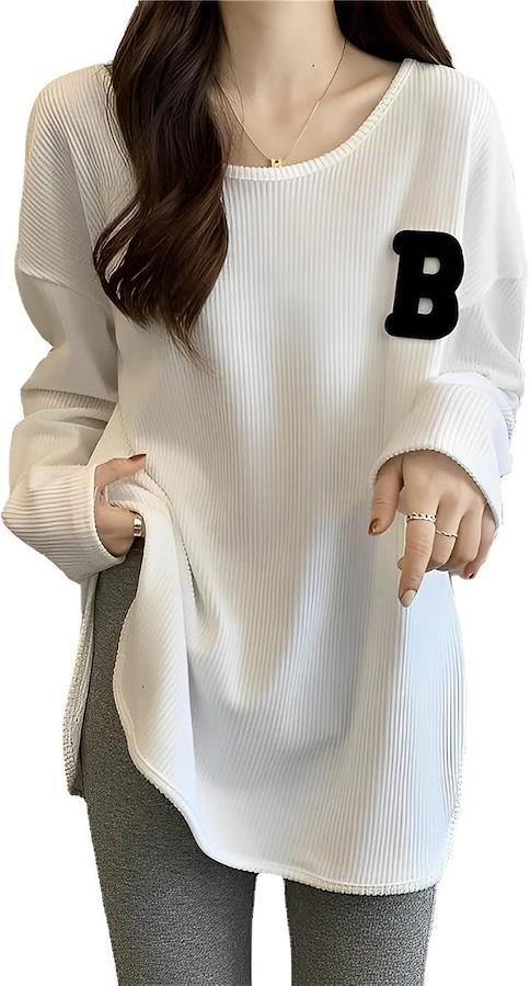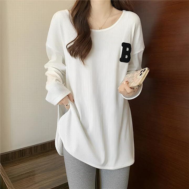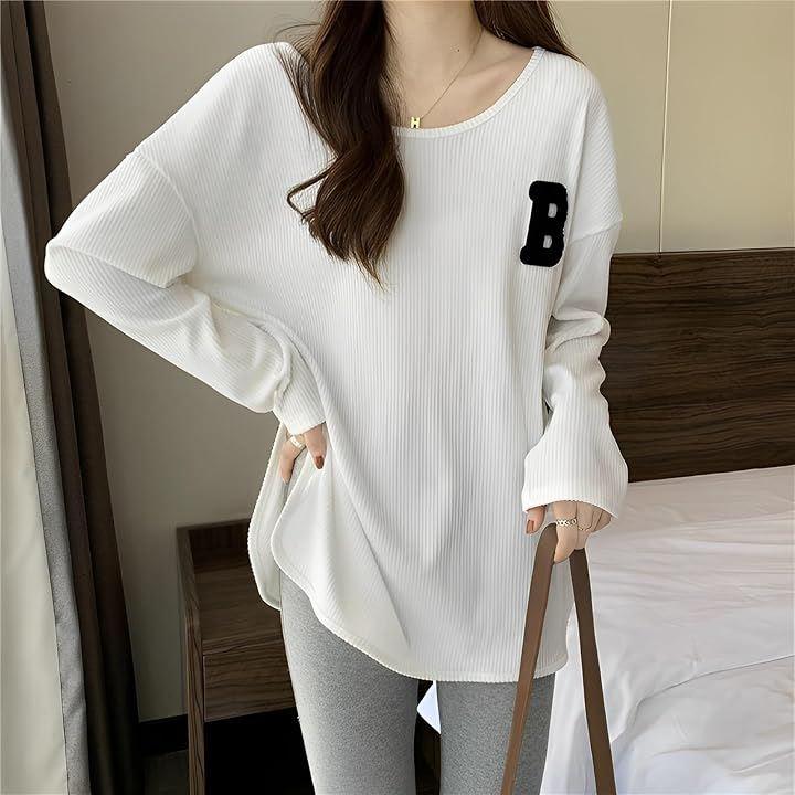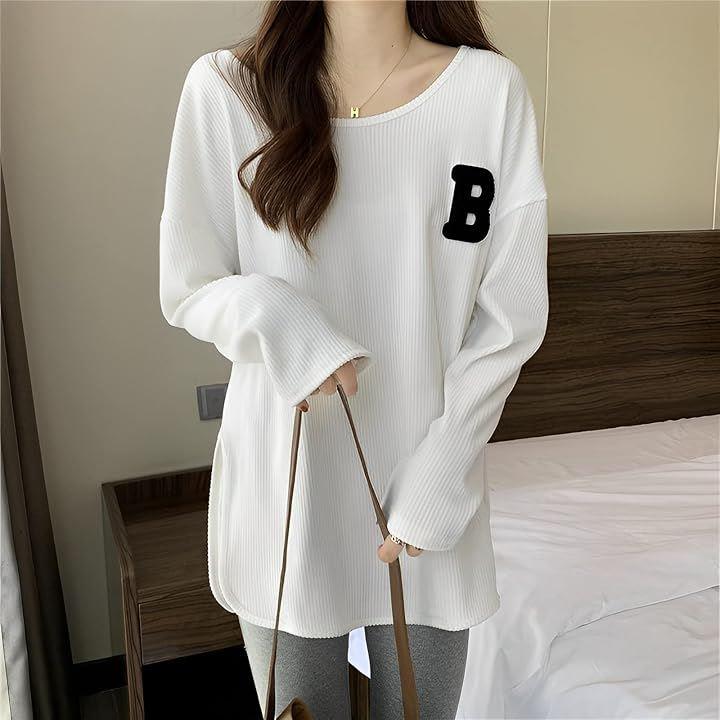 シンプルながらもゆったり感が大人可愛い。オーバーサイズの長袖Tシャツカットソー。