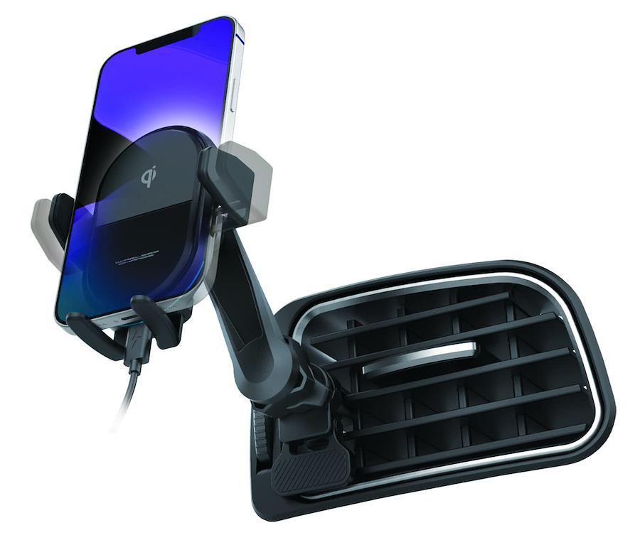 ●ワイヤレス充電対応のiPhone/スマートフォンを置くだけで充電できるワイヤレス充電器。?●ワイヤレス充電の規格「Qi」正規認証品。?●Qiコイル検知センサー搭載。? ワイヤレス充電(Qi)対応スマートフォンを置くだけで左右アームが自動でホールド。?●タッチ式センサー搭載。? スマートフォンを取り出す場合は、アーム開閉ボタンにふれるだけでアームが開きます。?●キャパシタ内蔵。? エンジンOFFの状態でも数回電動でアーム開閉が可能。?●ロングアーム式 エアコン取付タイプ。? エアコン吹出口の風が直接当たりにくく、操作レバーの干渉を避けて設置可能。?●ボールジョイント採用。? 取り付け後も360°見やすい位置に角度調整が可能。?●手帳型ケース・ハード型ケース対応。? しっかりホールド&充電。?●最大10Wの急速充電対応。?(急速充電には対応機器とQuick Charge 2.0以上の充電器が必要です。)?●通電状況が分かるLED付き。?(赤点灯:本体通電中/ゆっくり青色点滅:充電時/赤点滅:異常時)?●補助足の調節機構。? スマホのワイヤレス充電位置