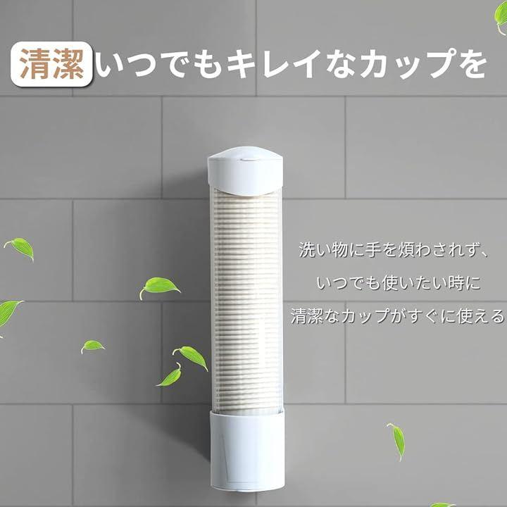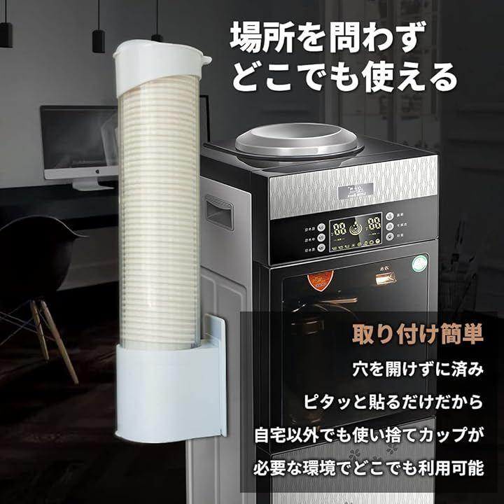 「衛生的カップディスペンサー」カップディスペンサーは紙コップを一個ずつ簡単に取り出すことができます。