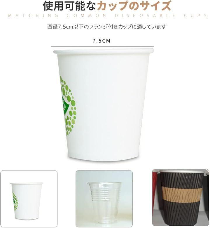 紙コップ、プラスチックカップなど様々なコップを使うことができます。