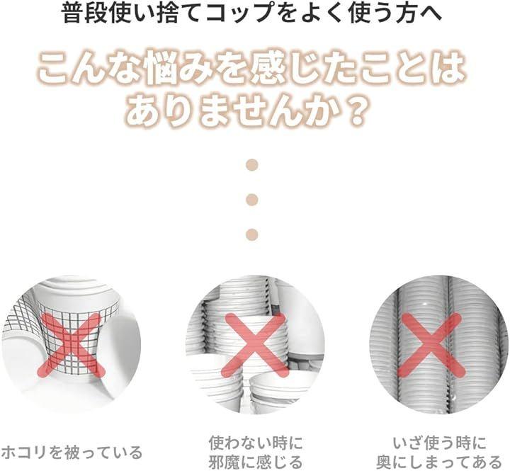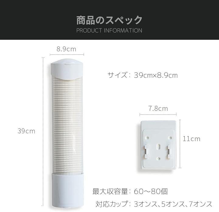「様々なカップに対応」カップディスペンサーは60~80個収納できるよう大容量に作られています。