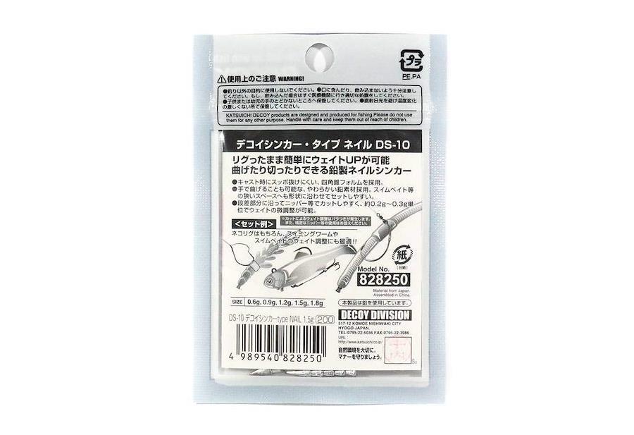 リグったまま簡単にウェイトUPが可能なネイルシンカー! ワームに突き刺して使用できるネイルタイプのシンカーです。スイミングバランスの安定化や、フォールスピードを変えるといった微調整が可能。ストレートワームを使用したネコリグはもちろん、シャッドテールやスイムベイトにも最適! キャスト時のすっぽ抜けを軽減する角ばったデザインを採用。 ●ワームに埋め込んでウェイトUPが可能な、ネイルタイプシンカー。 ●刺しやすく抜けにくい、四角錐フォルムを採用。 ●ギザギザに沿ってニッパー等でカットすれば、約0.2~0.3g単位でウェイトの微調整が可能。 ●高比重で純度の高い鉛を使用。ニッパー等でカットしやすく、手で曲げることが可能。様々なシチュエーションに対応。