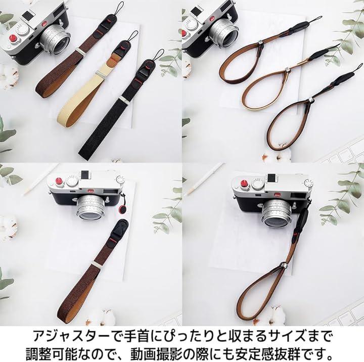 小さめのバッグにもカメラごとすっぽりと収納出来、撮影時にはサッと手や手首に通すだけで落下防止になります。