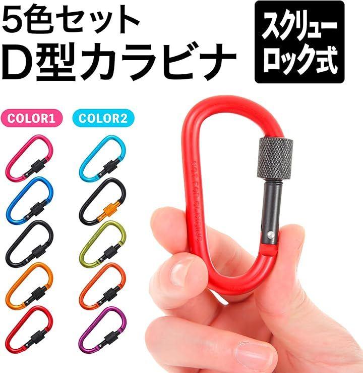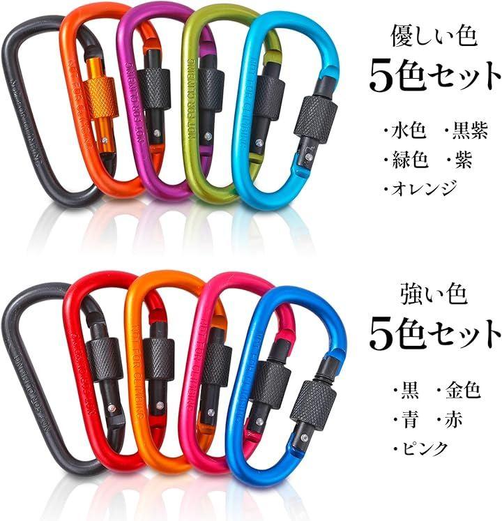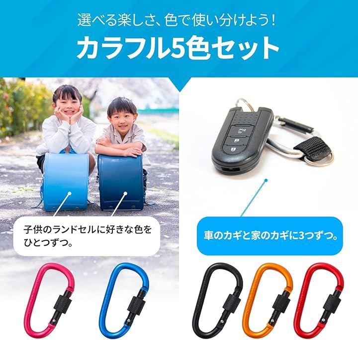 5色で使い分けてもっと便利に。」 このカラビナは、色ごとに使い分けができる5色セット。