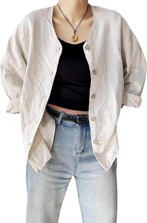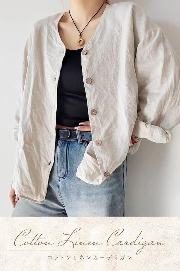 上質なコットンリネン素材を使用したカーディガンは、軽やかな着心地と洗練された雰囲気を演出します。
