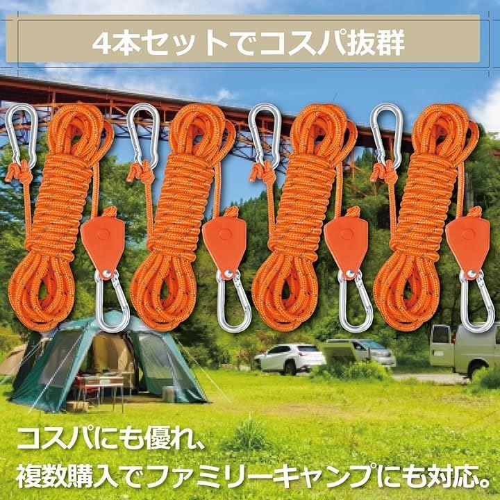 「多用途で使い方様々」キャンプやアウトドア以外にも、物干しロープ、日よけシートの固定、イベント装飾、工具やランタンの吊り下げなど使い方はアイデア次第。屋外・屋内問わず幅広く活躍します。