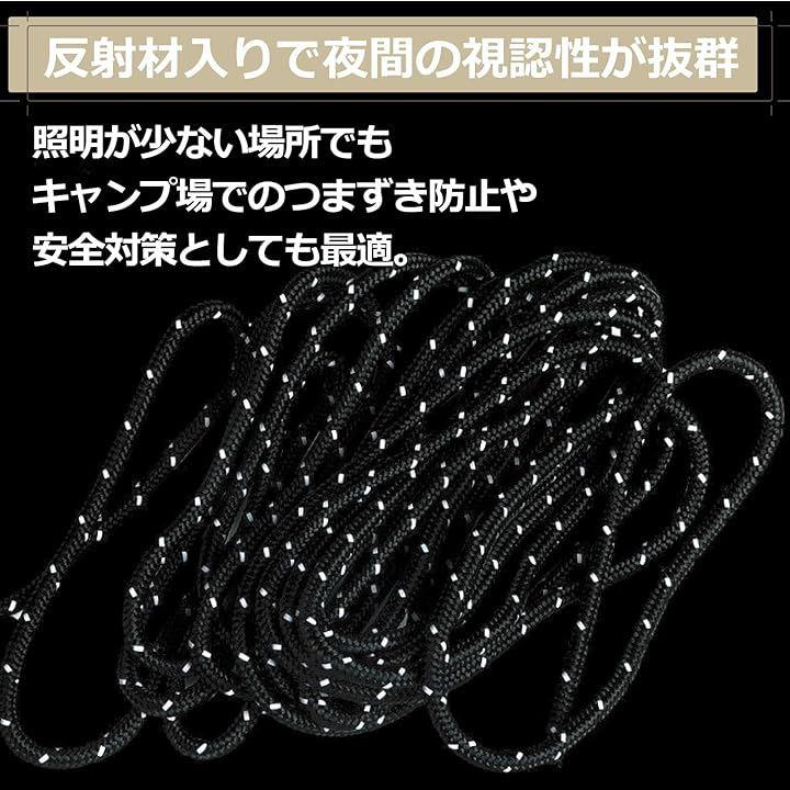 「夜間も安心の反射材入りロープ」ロープには反射素材を編み込み、夜間でも視認性バツグン。