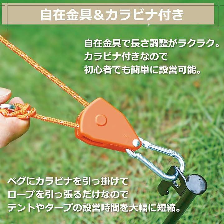 工具不要でスムーズな取り付けができ、テントやタープの設営時間を大幅に短縮します。