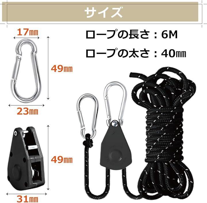 「自在金具&カラビナ付きで簡単設営」自在金具で長さ調整がラクラク。