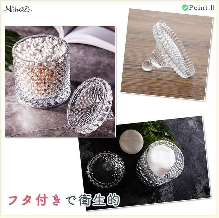 コットンや綿棒、爪楊枝など清潔に保管使用したい日用品の収納にオススメのガラスジャーです。
