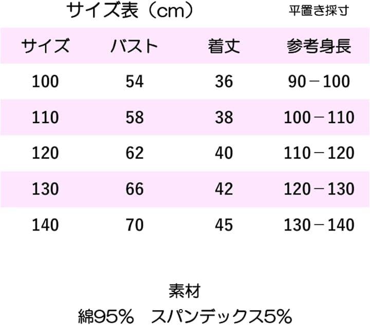 100サイズから140サイズまでご用意。成長期の女の子にぴったりフィット。