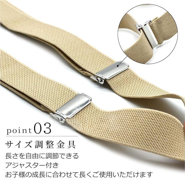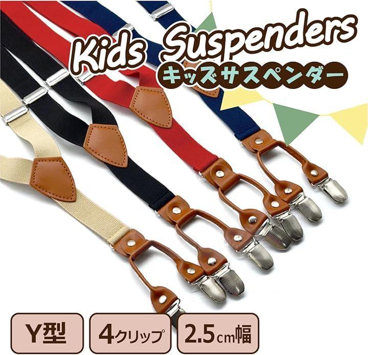 お子様のズボンやスカートの吊り下げに 入園・入学・卒業などに。 2.5cm(25mm)で安定感あるY型(4クリップ)キッズ用のサスペンダーです。