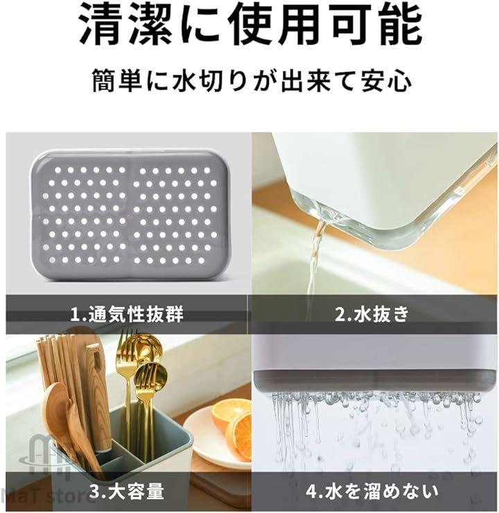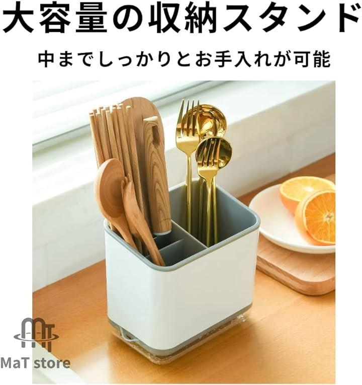 ・「簡単に水切りが出来て安心」キッチンツールスタンドは、傾けると水が抜ける仕組みになっております。