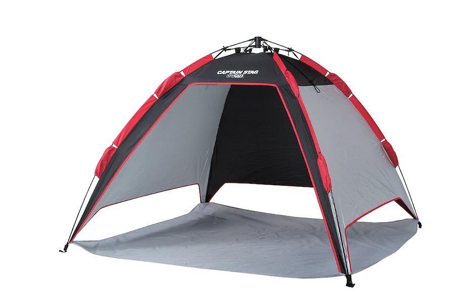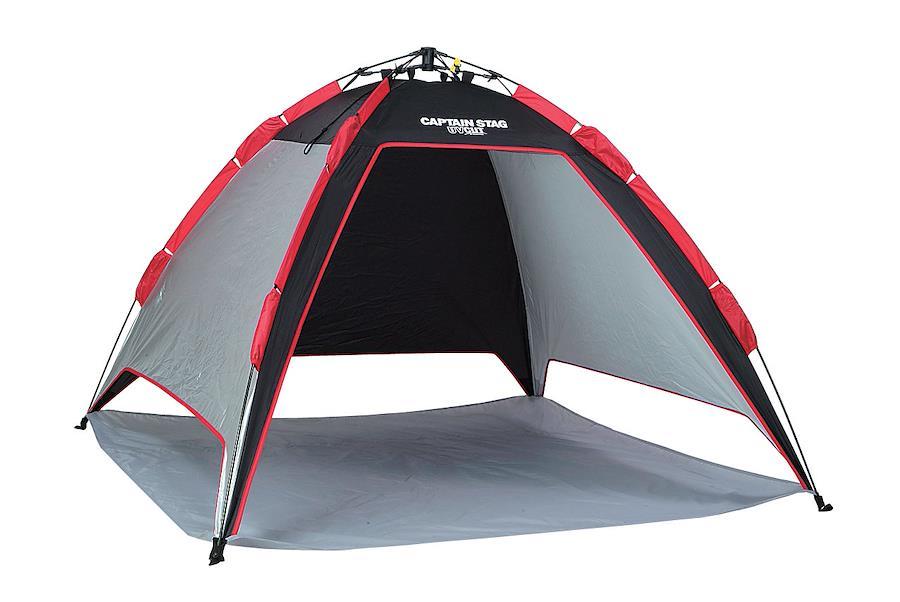 キャプテンスタッグ(CAPTAIN STAG) クイックサンシェルター200UV ブラック[1-2人用] M-3139重量:(約)2.4kgサイズ:(約)組立てサイズ/200×200×130cm、収納サイズ/75×14×15cm材料:ウォール/ポリエステル70D(PU防水)、グランドシート/ポリエステル150D(PU1,000mm)、ポール/グラスファイバー7.9mm付属品:ペグ4本、砂袋4枚、ペグ収納袋1枚、キャリバック1枚