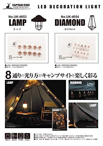 8通りの光り方がキャンプサイトを楽しく彩る。暖色LED採用。生活防水。テントの出入口やクイックシェード、インナーテントに。飾り付けとしてもおしゃれ。