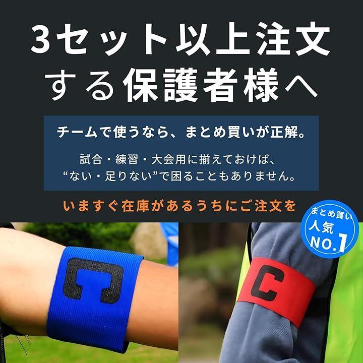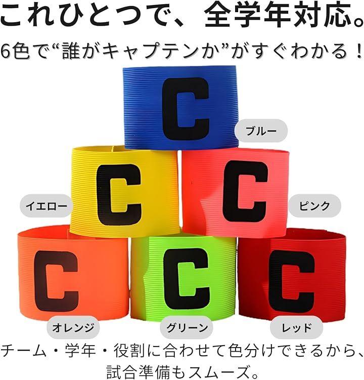 「チームの中心が一目でわかる、カラーで魅せるキャプテンマーク」鮮やかな6色セットは、青・赤・オレンジ・黄色・ピンク・ライトグリーン。